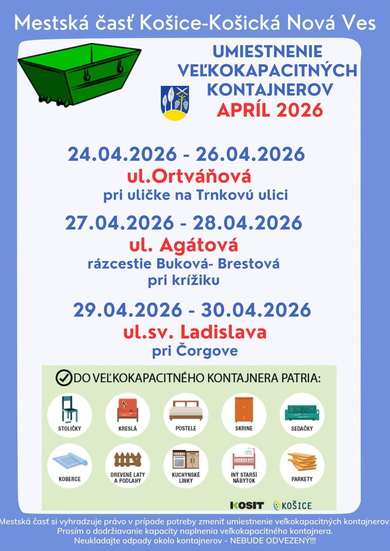 Umiestnenie veľkokapacitných kontajnerov - Apríl 2026