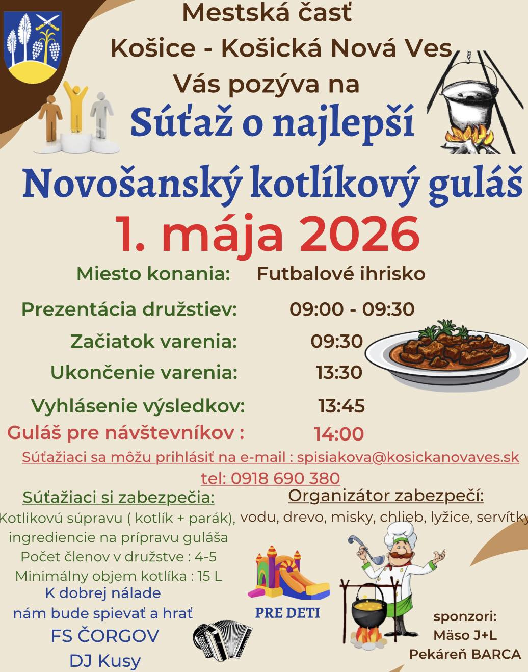 Mestská časť Košice - Košická Nová Ves Vás pozýva na "Súťaž o najlepší Novošanský kotlíkový guláš."